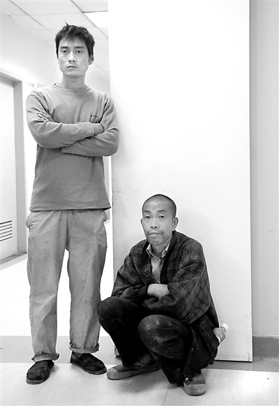图为长安医院急救室外,幸存者杨应奎正和一位工友默默等待着,希望正在抢救的工友能转危为安。宁峰/摄