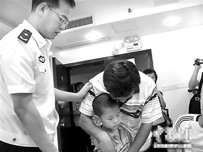 一名被拐儿童父亲从公安人员手中接过儿子时,紧紧将其搂在怀里。新华社记者郭斌 摄