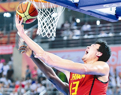 中国男篮在篮下的优势,既使在亚洲也已不明显。如同苏伟这次上篮,十分勉强。新华社发