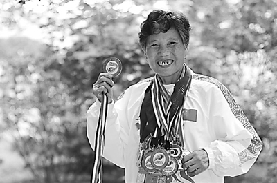 7月15日,济南长跑爱好者陈序华双手高擎国旗,荣耀地站在美国加利福尼亚萨克拉门托运动场的颁奖台上,她以50分13秒和23分56秒22的成绩,分别获得第19届世界老将田径锦标赛女子70~74年龄组1万米银牌和5000米铜牌,是21位参赛中国选手中唯一获奖牌者。迄今,71岁的陈序华已在亚洲、全国、省、市级田径、长跑和国际登泰山等比赛中拿到95个冠军奖牌,创造了一个又一个的“传奇”。