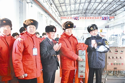 姚伟(右二)按下中俄、漠大原油管道正式输油的按钮