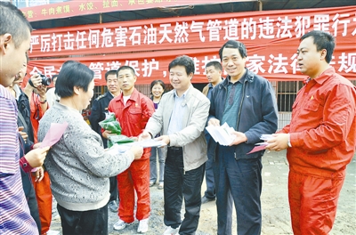 管道公司立体交叉防护体系在管道保护中发挥了积极作用,图为分发管道法宣传品