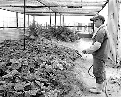 50多岁的徐师傅正忙活着浇水,见记者走了过来,就摘下几颗熟透了的西红柿,用水冲冲递了过来。一口咬下去,真甜。