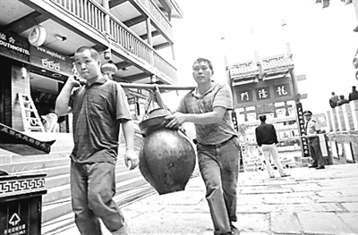 乡镇上的居民为避水灾,乘着雨停的间隙赶忙搬家。