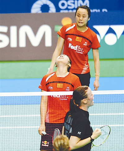 9月22日,田卿(中)/赵芸蕾(后)在比赛中。当日,在日本东京举行的日本羽毛球公开赛正赛女双第二轮比赛中,中国选手田卿/赵芸蕾以0比2不敌丹麦选手彼得森/吕特,无缘8强。 新华社记者 季春鹏 摄