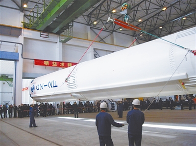 图为发射中心的职工对“长征二号F遥八”型运载火箭进行装卸组装。用来发射神舟八号飞船的“长征二号F遥八”型运载火箭已运抵中国酒泉卫星发射中心。发射“天宫一号”目标飞行器的“长征二号FT1”型运载火箭已装卸调试完毕。本报记者 车辉 摄