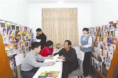 冀中能源股份公司党委副书记、纪委书记宋全保(右)与农民工代表签订劳动合同