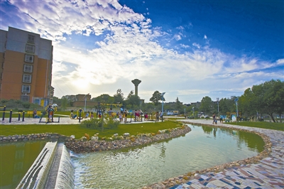矿区绿树成荫,碧水长流,员工仿佛置身于花园之中