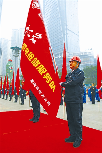 赵晓勇代表“国家电网红岩供电抢修服务队”向重庆市民承诺优质服务