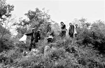 下山赶集的路有两条:一条是用脚踩出来的山路;另一条是去年底修好的10里水泥盘山路外加4里的砂石路。由于山路比大路近6里,老人们更愿意选择走了200多年的山路。