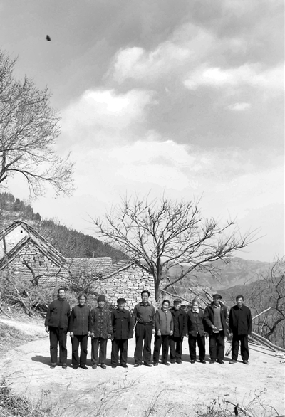 留守老人和村支部书记(左五)今年春天拍摄的“全家福”