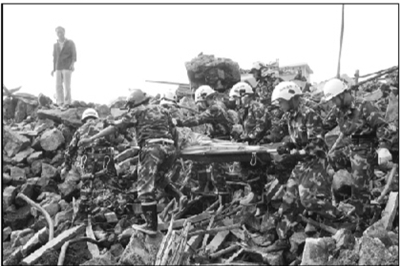 救援人员在湖南凤凰在建大桥坍塌现场(资料照片)