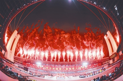 10月11日,中华人民共和国第八届残疾人运动会开幕式在浙江省杭州市举行。这是开幕式现场。新华社记者 徐昱 摄