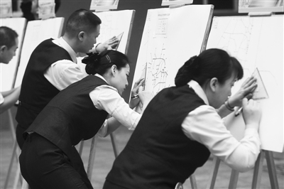 10月10日,四川省成都市,铁路系统参赛选手正在1小时内默画铁路客运运价里程结算展示意图。当日,“宏得杯”青工职业技能大赛在成都市技师学院举行,来自四川省各地的250名青年技工同场竞技。郭鑫 摄