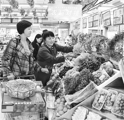 吉林延边国贸超市实行“农超对接”模式,直接把农户、合作社和超市对接起来,减少流通环节,提高流通效率,受益广大城乡百姓。 新华社记者 张燕辉 摄