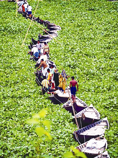 水葫芦生长得很快,不知不觉中就会把河道和湖泊“吃”掉。(资料图)