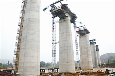 兰新铁路西河镇湟水河特大桥全长3608.44米,有112个墩台,最高墩高45米,河道中心采取32米+48米+48米+32米连续粱施工,是全线重点控制工程。建设者精心组织、科学施工,克服深水桩基等施工技术难题,保证了工程的正常开展。图为大桥进入连续粱施工阶段。曹战锋 摄