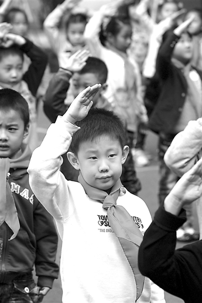 当日,山东潍坊市多所小学纷纷举行一年级新生入队仪式、唱中国少年先锋队队歌、学习中国少年先锋队章程等活动,庆祝10月13日中国少年先锋队建队62周年。