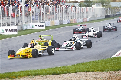 本报讯 伴随着动人心魄的引擎轰鸣声,“王力杯”中国方程式大奖赛(CFGP)第三站比赛,于10月16日在北京金港赛车场落幕。经过两回合的激战,本站比赛的冠军归属直到最后一刻才水落石出——来自品酒客车队的崔岳在最后时刻绝地反击,惊险夺冠;亚军及季军则被来自王力丹弗车队的邰怿与刘辉豪获得。