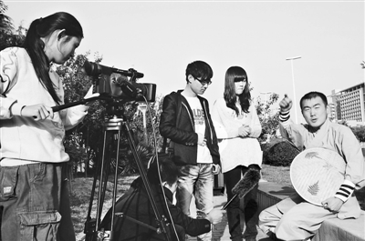 10月15日,山东青岛开发区打工仔陈长健和他的团队正在拍摄电影——2012草根新年贺岁片《陈小二进城》。当日,该片在青岛开发区正式开机拍摄。该片根据陈长建这几年的打工经历创作而成,通过小人物陈小二的进城经历,揭示了市场经济中少数人因为金钱导致的道德滑坡,呼唤真善美和传统道德回归。俞方平 摄