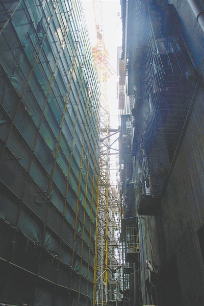 楼脆脆、楼裂裂、楼倒倒……这些楼市中的“怪象”已被读者所熟知。最近在重庆万州区五桥,又冒出了“楼靠靠”——3栋新建高楼紧挨着香炉山公寓,最近的地方不到5厘米,只有巴掌宽。香炉山公寓里的30多户居民犹如住进地窖,家中白天都要亮灯才能生活。