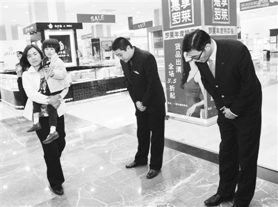 10月20日深夜,太平洋百货北京五棵松店的高层集体在门口鞠躬送别最后一批顾客。成立于2009年的太平洋百货五棵松店于当晚关闭,成立于2001年的北京盈科店也将于10月25日结束营业。太平洋百货隶属于台湾远东集团,据报道,太平洋百货10年前曾发下豪语,要拿下北京25%市占率。对于有人提出的“经营不善导致闭店”的说法,该店总经理陶玉聪给予否认。刘关关 摄