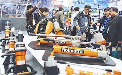 图为一些应急救援技术与装备产品吸引了国内外宾客观看。本报记者 许之丰 摄