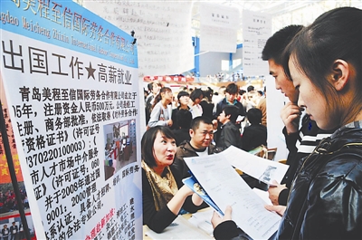 10月25日,山东青岛黄海学院招聘会现场,出国、高薪成为吸引应届毕业生的新招。