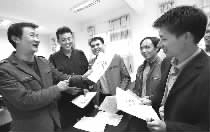 该公司下属的逢春煤矿以基层班组为单位组织员工答题,然后由各队统一收集上报给矿工会。24日下午,结束答题的逢春煤矿救护队员朱平(左一)手里高举着答题卡自信地向队友炫耀:“我绝对是100分撒!” 张登泽 摄