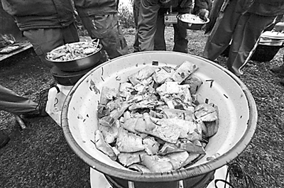 ③ 简单的饭菜就是十几个物探工人的午餐。