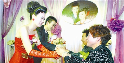 10月18日,李广夫妇在婚礼上为父母敬茶。