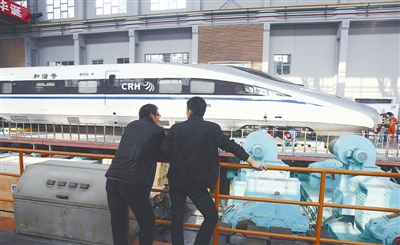 10月29日,四川省成都市,西南交通大学轨道交通实验室启用,可以在每小时600公里运行速度下,模拟动车组在铁轨上“运行”,实现对动车组性能的测试。据悉,今后国内所有新型的高铁列车在投入使用前都将运送一辆到该实验室,接受安全性能检测。程尚 摄