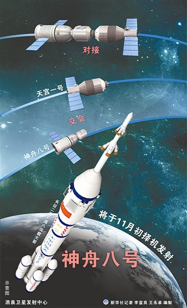 秋意渐浓,一股冷空气来到了中国酒泉卫星发射中心上空,烈烈风中,神舟八号船箭塔组合体仍被包裹在蓝色的密封舱内,直到发射前4小时,密封舱才会逐级打开向世人展现神舟八号的神秘面容。