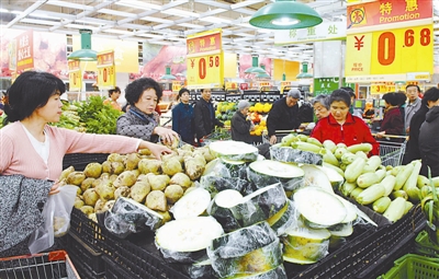 10月31日,市民在天津一家大型连锁超市内选购蔬菜。