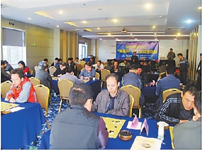 由中国电子体育协会举办,中国电子信息产业发展研究院(赛迪集团)承办的“赛迪杯”职工业余围棋授段比赛日前在山东威海市举行。来自全国电子信息行业的16支代表队和48位围棋爱好者参加了比赛。山东省济宁市经济和信息化委员会、中国电科集团第十四研究所、第五十四研究所分获团体一、二、三名;扈东峰、高利全、刘华分获个人一、二、三名。图为比赛现场。