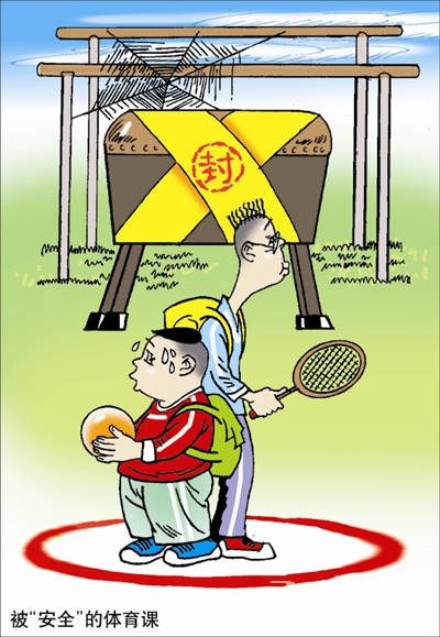 把学生变相“圈养”,让体育课只做“象征性”的锻炼,其实是一种因噎废食。虽然,学生安全了,没有了伤筋动骨的后顾之忧;学校安静了,没有家长的上门讲理;老师平安了,不再害怕和社会和舆论的“兴师问罪”,但是,教育却“杯具”了,因为学生们已经逐渐失去了对勇敢、冒险、奋发和挑战精神的培养,乖得像一群绵羊。