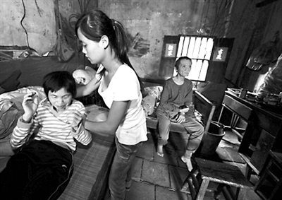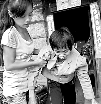 “妈妈和妹妹都是智障,爸爸偏瘫,现在,我一步也不敢离开这个家。”在福建省华安县丰镇一个林果场一间破旧瓦房里,弱小女孩曾秋玲一会儿为爸爸送水,一会儿扶妈妈躺下,一会儿为妹妹端饭,精心地照顾着家里3个病人。