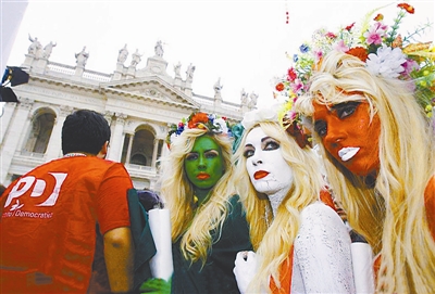 11月5日,成千上万意大利民众在首都罗马市中心举行反政府示威,要求总理贝卢斯科尼辞职下台。民众聚集在罗马市中心广场,批评贝卢斯科尼处理国家债务危机不力,呼吁立即举行大选。谢涛 供图