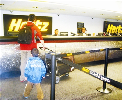 赵先生一家到达美国后,从机场直接乘轻轨前往赫兹公司租车点,办理租车手续。 蒋菡 摄