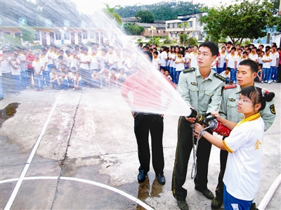 在第21个“119”消防宣传日来临之际,高州市公安消防大队针对农民工子女缺少消防安全知识、容易酿成火灾事故的特点,组织官兵走进农民工子女学校,开展“农民工子女零距离学消防”活动。