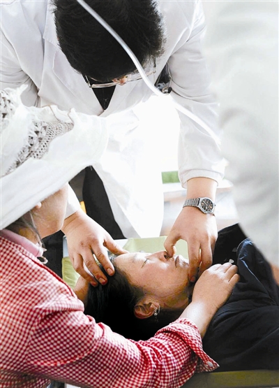 11月11日,救护人员在抢救一名得知噩耗昏厥的遇难者家属。