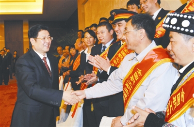 11月15日,中共中央政治局委员、全国人大常委会副委员长、中华全国总工会主席王兆国会见受表彰代表并作重要讲话。本报记者 张宪 摄