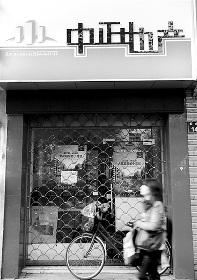 11月14日,杭州长庆街只剩下六七家品牌中介还在撑着,每家门店都门可罗雀。2009年市场行情火爆时大力拓展门店的新锐中介公司,一度连锁加盟店达到近百家,但是在今年这场寒冬中,不得不选择“瘦身”,已经将门店缩减了一半多。 梁臻 摄