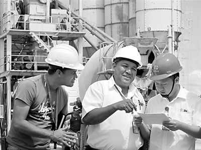 为了进一步在南美市场打响中国中铁品牌,参加委内瑞拉北部平原铁路建设的中铁四局一公司在施工过程中严格按照工程设计和规范进行施工,并随时监控工程每道工序的质量,确保打造精品工程,受到当地监理、业主的赞扬。图为委内瑞拉籍环境工程师与中方工程师在项目部混凝土拌和站共同商讨环保施工方案。 郑连平 文良诚 摄