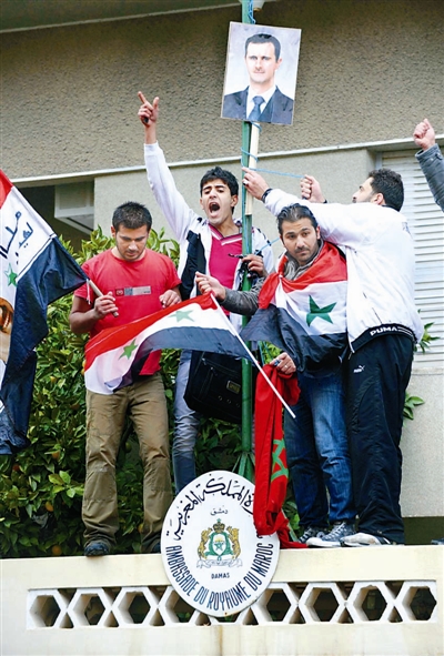 16日,摩洛哥与阿联酋驻叙利亚大使馆遭到叙利亚亲政府示威者的袭击。之前,沙特、土耳其、卡塔尔和法国等国驻叙使馆也遭到了袭击。
