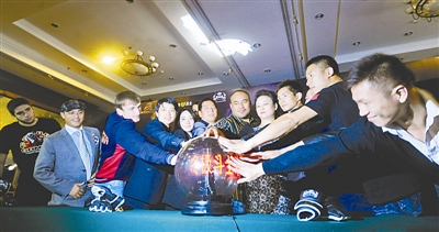 11月17日,参加新闻发布会的选手和嘉宾参加启动仪式。当日,2011-2012年“终极斗士”跨年搏击争霸赛新闻发布会在长沙举行。2011年12月31日至2012年1月1日中国选手将对阵包括拳王泰森在内的世界各国高手。 新华社记者 白禹 摄