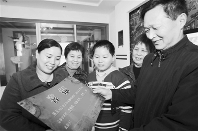 11月19日,江苏永钢集团劳动竞赛获奖员工陈东的家人满怀喜悦地拿着公司寄来的大红喜报。据了解,为表彰优秀员工,永钢集团向在各类竞赛和评比中获得突出成绩的员工家庭邮寄喜报。黄智强 摄