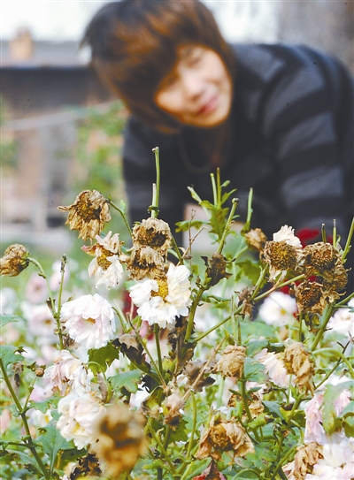 今年以来,有“千叶玉玲珑”美称的杭白菊价格遭遇“过山车”式行情,在杭白菊原产地浙江桐乡市,大菊收购价从去年最高的每公斤10元,到今年11月最低跌至每公斤0.4元,目前维持在每公斤1.6元~2元。由于价格低廉,目前还有约3000公斤的杭白菊在地里被放弃采摘,并开始凋落腐烂。 新华社记者 王定昶 摄