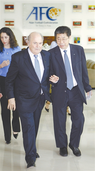 正在举行的亚足联大会会聚了不少国际足坛名流。当地时间11月23日,2011亚足联年度颁奖大典在吉隆坡举行,国际足联主席布拉特、亚足联代主席张吉龙携手出席。CFP供图