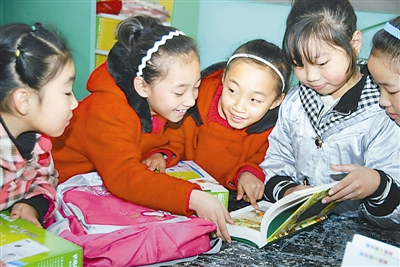 11月22日,孩子们在饶有兴致地阅读图书。日前,河北任丘市800多名外来务工人员子女都收到了一张“小小心愿卡”,他们只需在这张卡片上写上自己的“小小心愿”,只要能够满足的,都会有当地的志愿者叔叔阿姨帮他们实现。新华社发 刘俊杰 摄